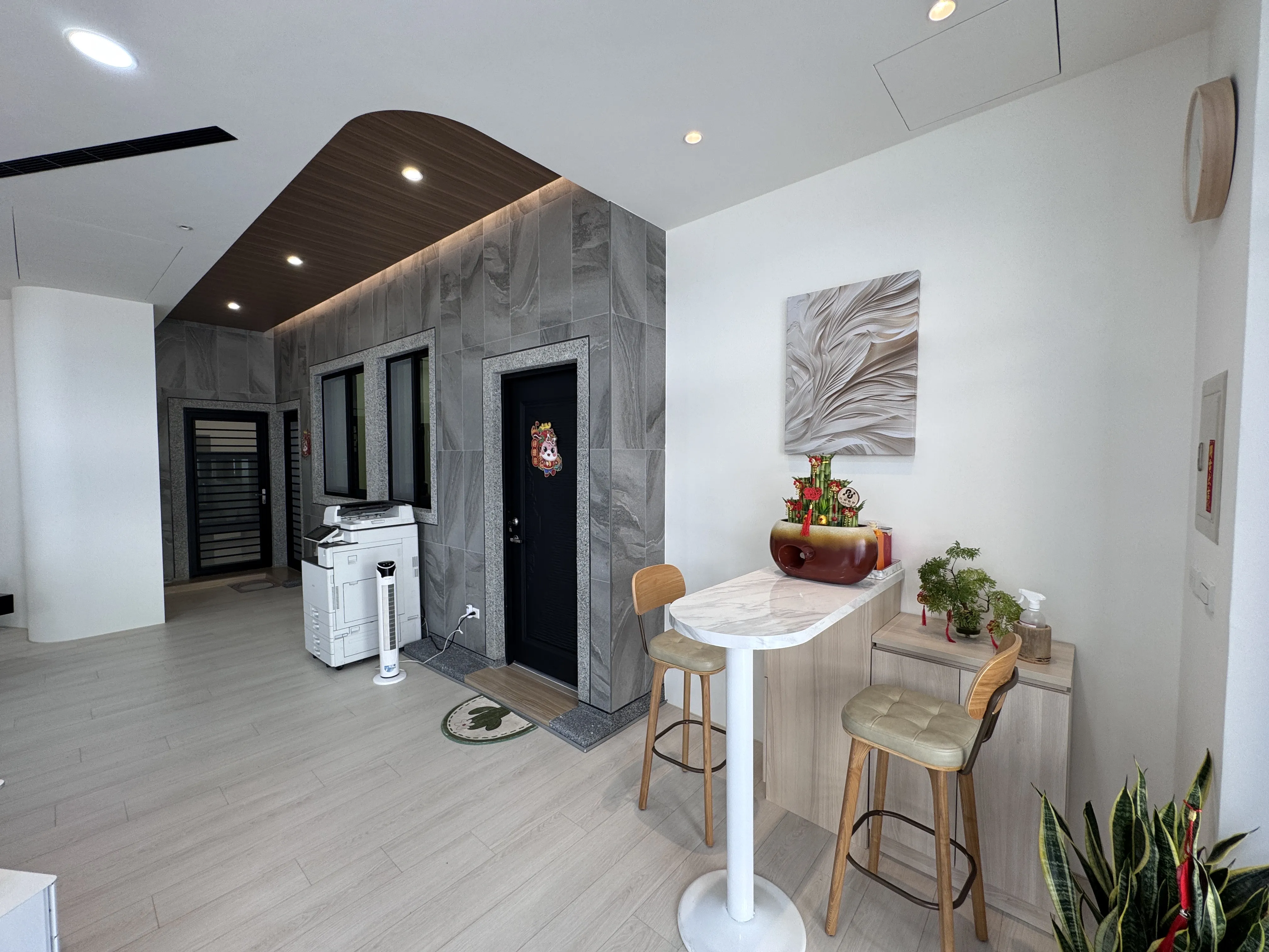 這是一間融合了侘寂風格與現代簡約調性的空間設計,這裡沒有強烈的色彩衝擊,空間採用淺色系為基調,我們將色彩控制在最舒適的奶茶色、米白與淺灰等大地色系,營造出寧靜、溫暖且穩定的氛圍。